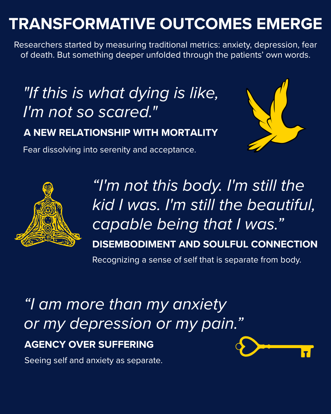 Many people utilize a or receive an. You exist back in a tranquil setting with an eye mask and songs while the medication works. Procedure last 6090 mins. You might experience: Visual imagery Emotional waves A feeling of being "outside" yourself Serene or spiritual insights Your therapist may speak to you delicately or continue to be silent, depending upon your convenience and the session goals.